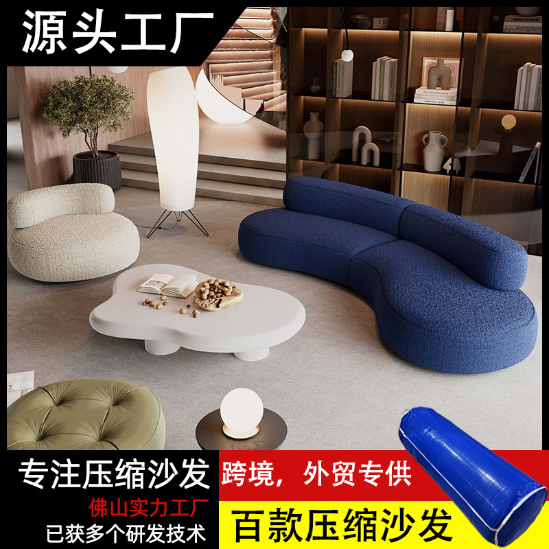 Sofa Lengkungan Bulan Sofa Kain Pisang Desainer Unit Ukuran Besar dan Kecil Gaya Instagram Krim Ruang Tamu Mewah Ringan Modern