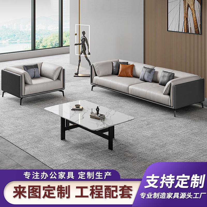 Sofa Kantor Sederhana Modern Model Baru Tiga Orang Penerimaan VIP Bisnis Kamar Negosiasi Kombinasi Meja Kopi Kulit Asli