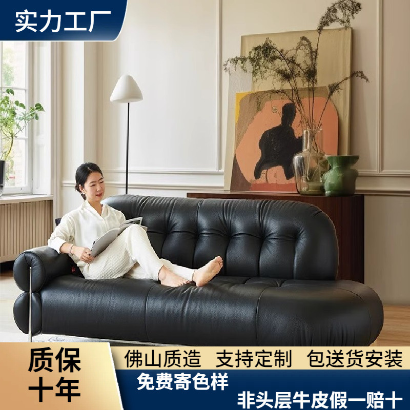 Sofa kulit lapisan pertama desain asli kaki tinggi hitam ruang tamu tempat tidur chaise awan gula coklat gaya retro Perancis kuno