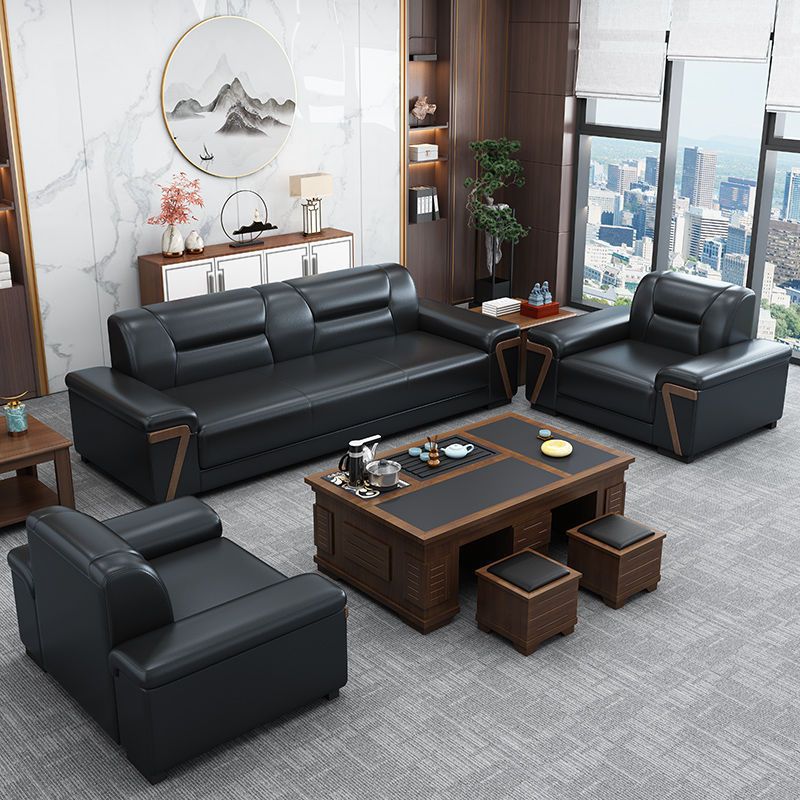 Kombinasi meja teh sofa kulit kantor bisnis ruang tamu pertemuan area sandaran sofa tiga kursi