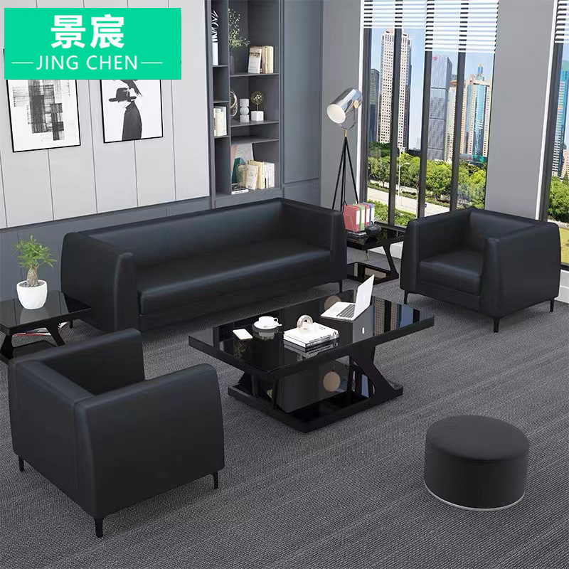 Sofa kantor modern sederhana kombinasi meja kopi, setelan simpel untuk resepsi bisnis kantor kecil kombinasi tiga kursi
