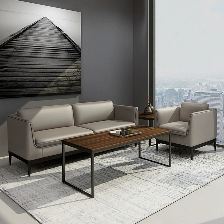 Sofa Kantor Bisnis Sederhana Modern Resepsi Tamu Kantor Sofa Kayu Sofa Kulit Set Meja Kopi Harga Spesial