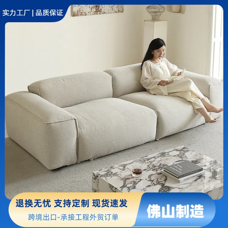 Sofa Puff Sofa lurus Ruang Tamu Gaya Krim Sofa Awan Mewah Modern Sederhana Sofa Seni Kain Ukuran Kecil