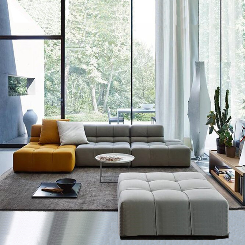 Gaya Italia Sederhana Modul Super Lembut Ruang Tamu Kain Kulit Kombinasi Dua Sisi Kombinasi Sofa Datar Besar Lembut Nyaman Produsen