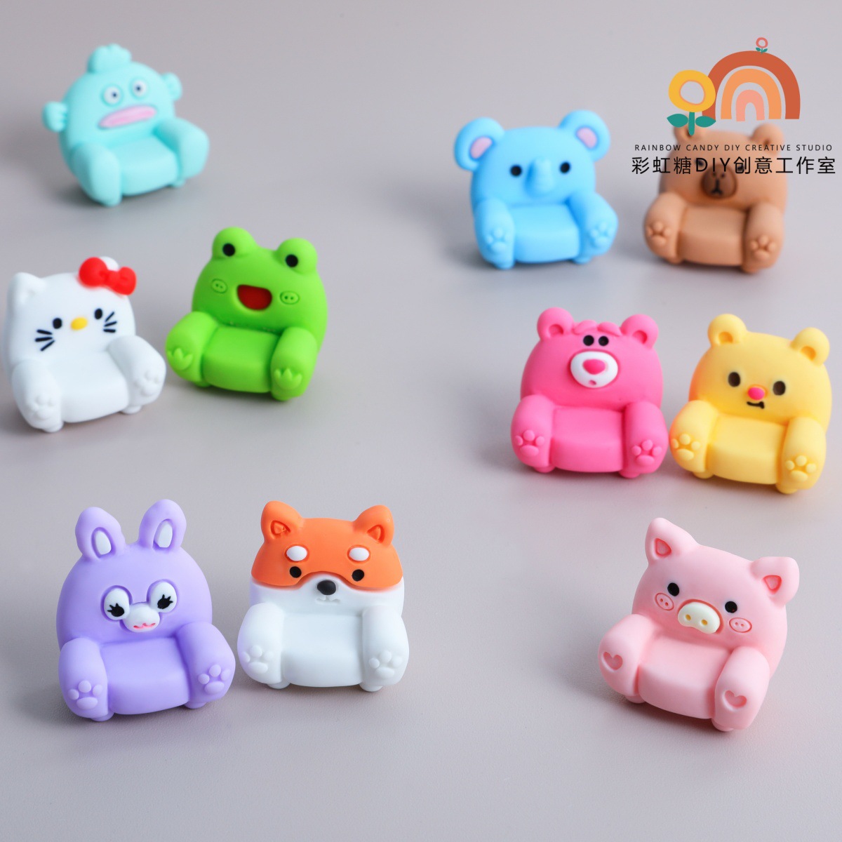 Kartun Resin DIY Warna Solid Hewan Sofa Gantungan Kunci Rumah Supermarket Mini Campuran Grosir