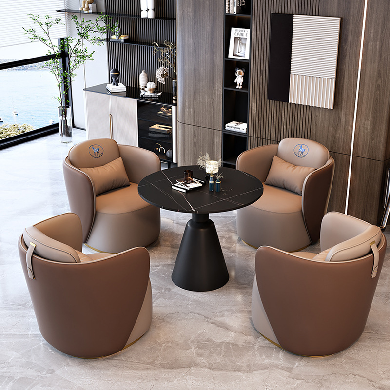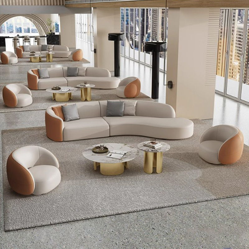 Area penerimaan perusahaan sofa arc meja kopi kombinasi hotel lobi cahaya sofa kulit mewah penjualan sofa negosiasi sofa