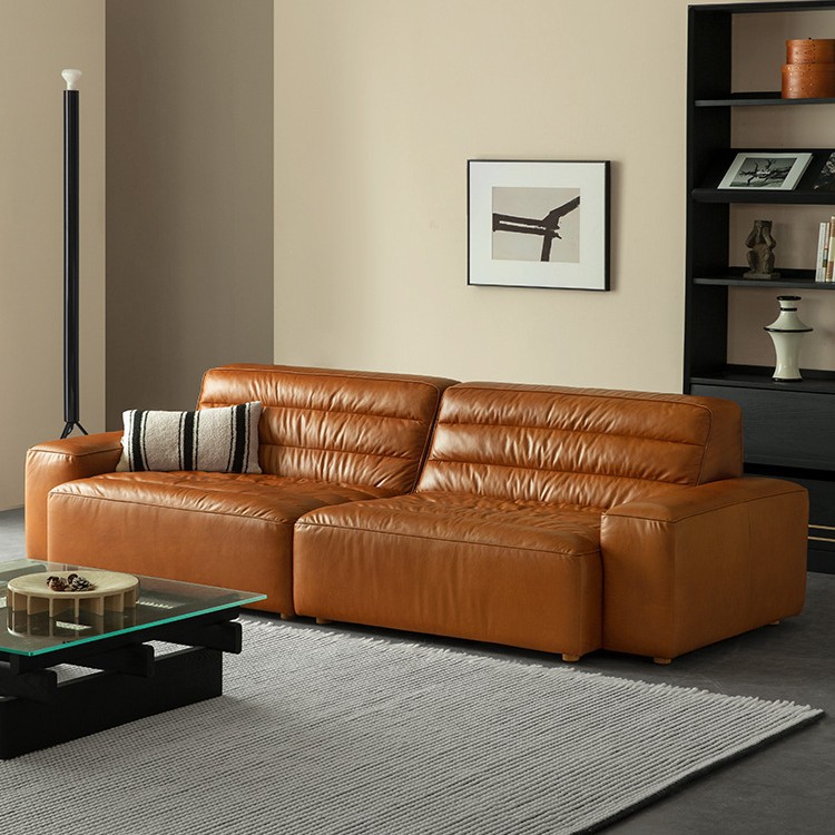 Sofa Kulit Lilin Minyak Mewah Retro Ringan Gaya Italia Minimalis Gaya Klasik Gaya Tiga Orang