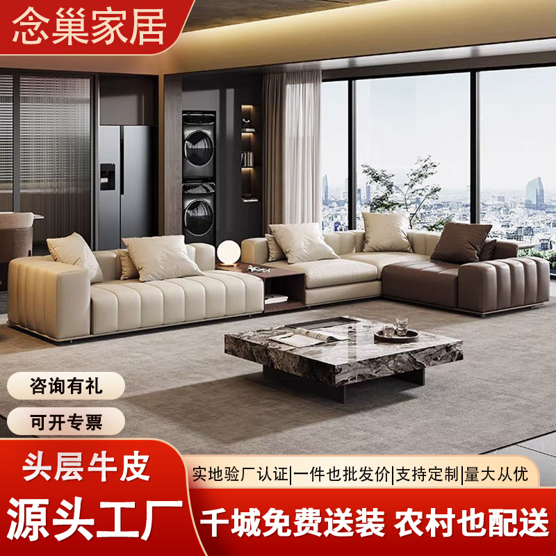 Sofa kulit kunci Piano lapisan pertama kulit sapi Italia minimalis besar dan kecil apartemen Villa sudut Selir kombinasi sofa kulit