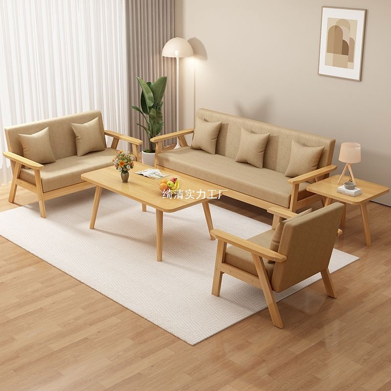 Sofa Kain Kombinasi Meja Kopi Kamar Tidur Rumah Sewa Model Baru Sofa Kayu Solid Pernis Sofa Sederhana Dua Orang Kantor