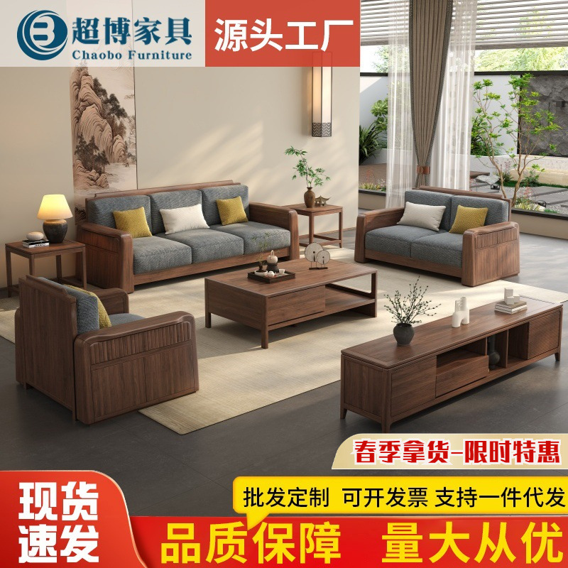 Sofa Kayu Solid Kayu Kenari Hitam Modern Sofa Kain Selir Rumah Tipe Kecil Sofa Sudut Ruang Tamu Tipe Kecil