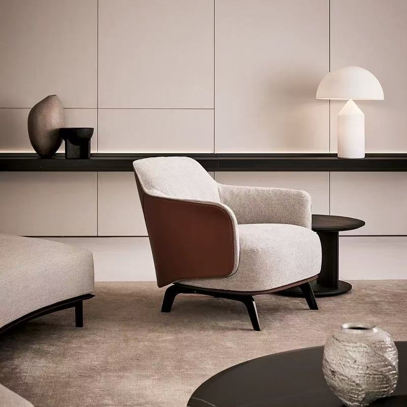 Kursi sofa kulit ruang tamu minimalis Italia kursi santai tunggal desainer hotel ruang pameran penjualan kursi negosiasi