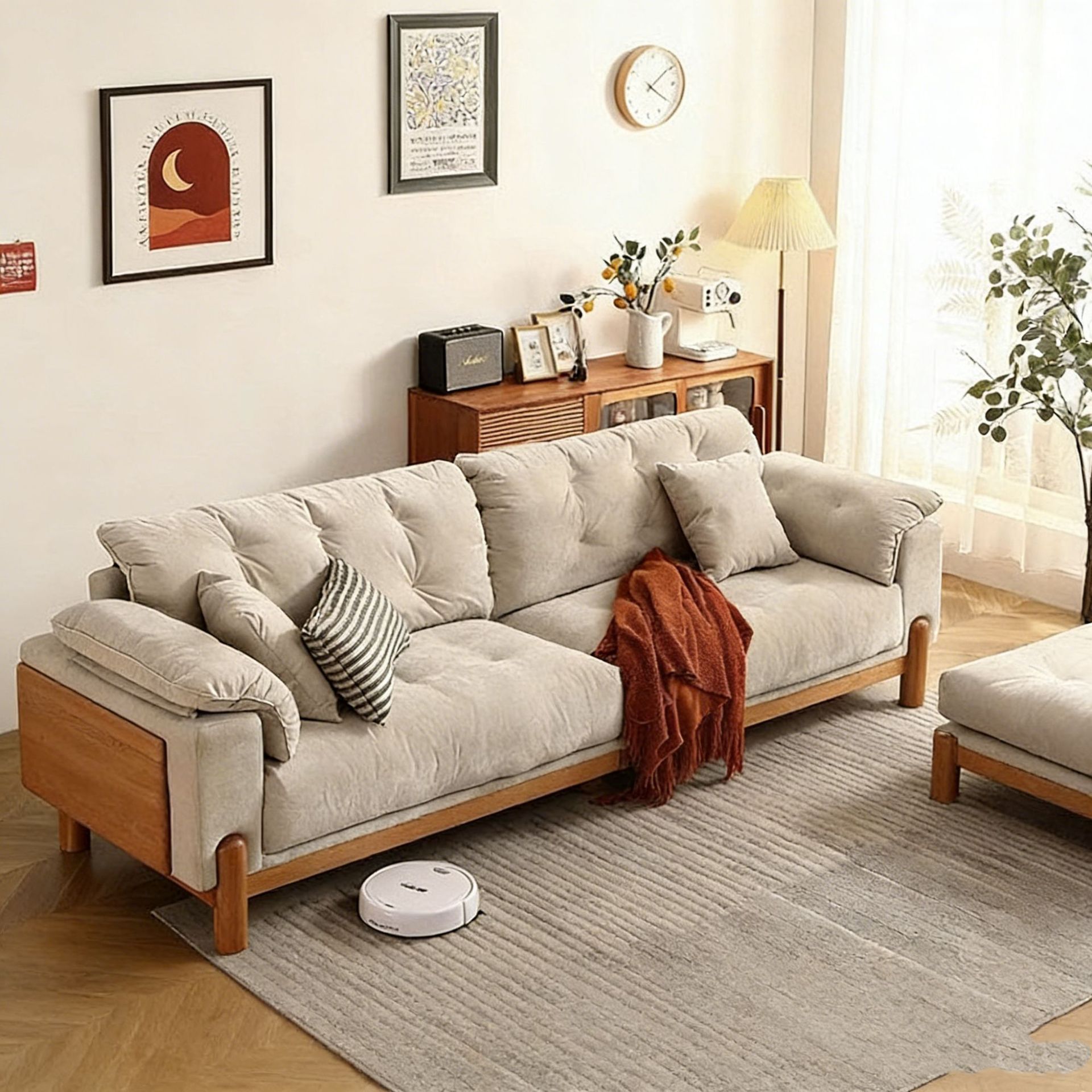 Zeyang sofa kayu solid, dudukan tiga kursi bahan kayu padat, Krim fengyunduo dapat dilepas dan dapat dicuci