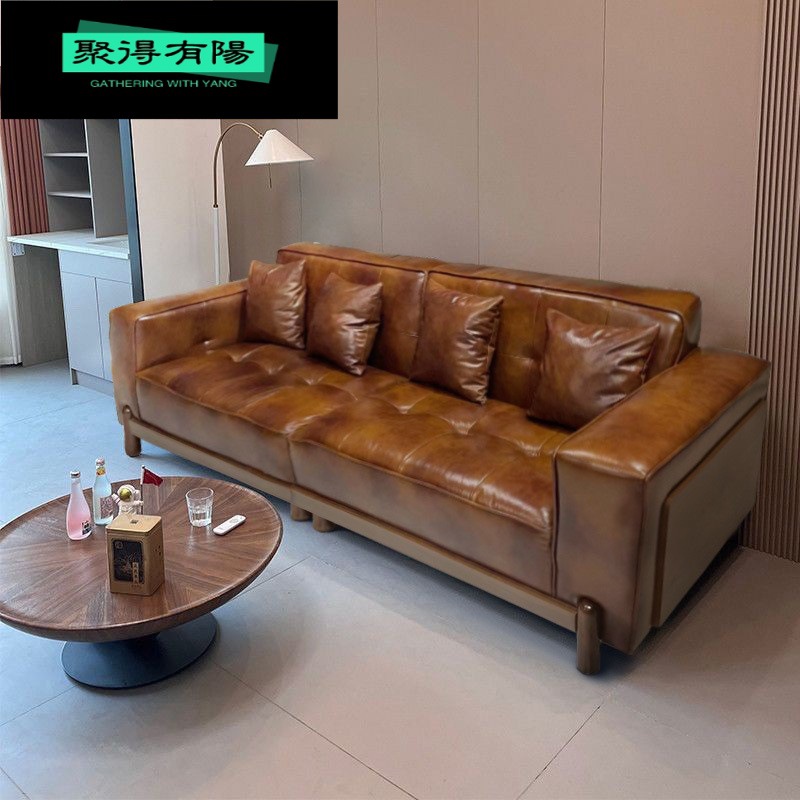 Sofa Kayu Padat Kayu Kenari Hitam Perabot Kombinasi Kulit Asli Baris Laris Kelas Atas Ruang Tamu Italia Gaya Eropa Utara Sederhana Modern Ruang Tamu