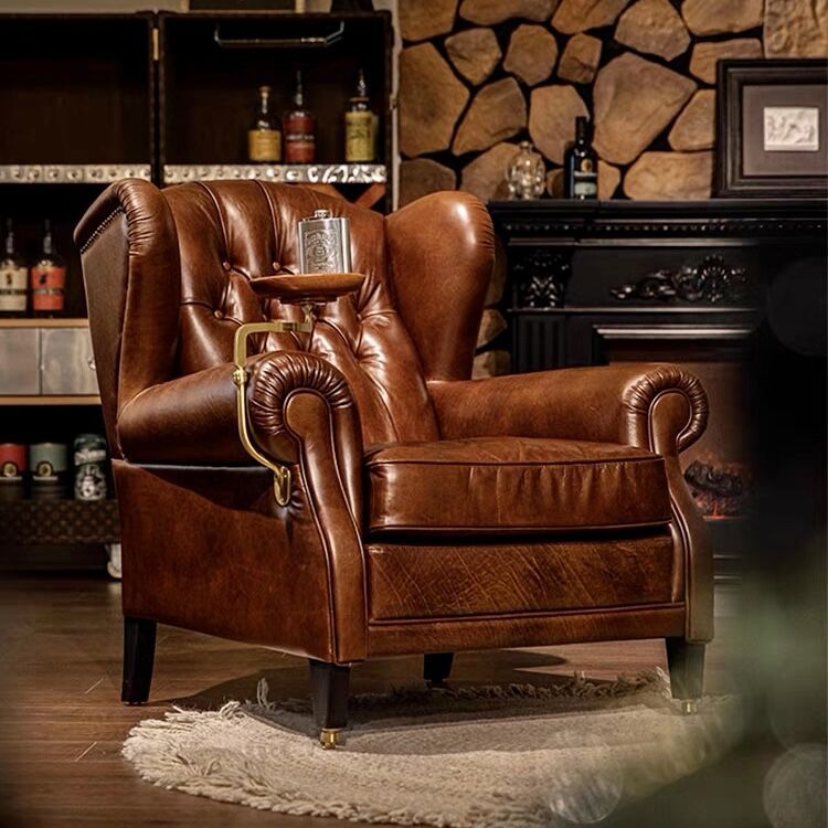 Gaya Pertengahan 1919 Kursi Cerutu Kursi Harimau Retro Gaya Amerika Klasik Kulit Lilin Minyak Kursi Godfather Sofa Tunggal Bar Cerutu