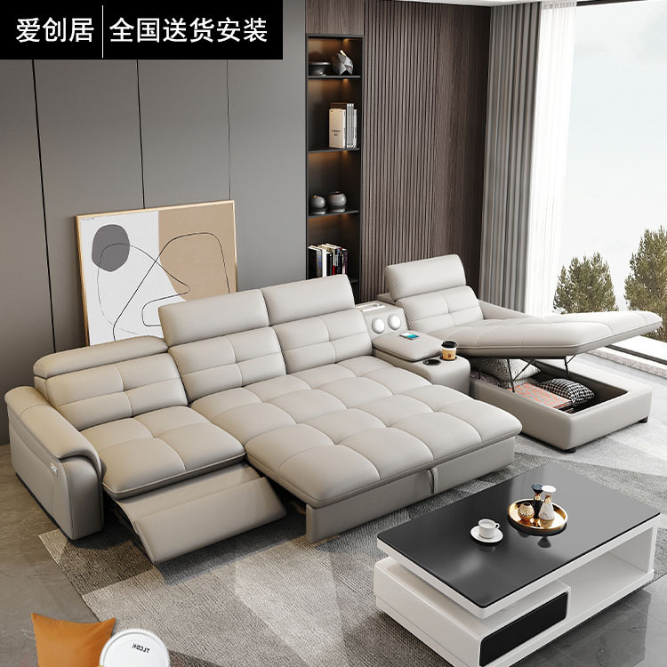 Sofa kulit elektrik multifungsi, tempat tidur sofa baris lurus besar dan kecil untuk apartemen, ruang tamu, penyimpanan lipat, penggunaan ganda