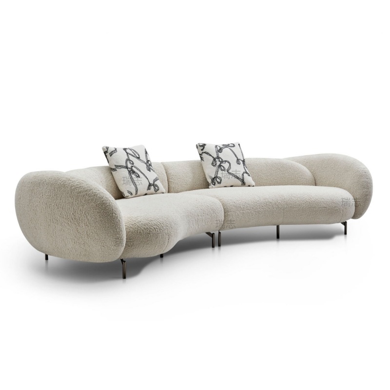 Big Bear Barton Sofa Bentuk Lengkungan Bulan Beludru Domba Kain Sofa Modern Sederhana Desainer Kreatif Selebgram