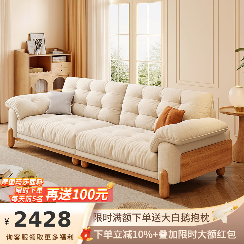 Jiji dan Eropa Utara Lot Sofa Fengyondu Gaya Jepang Sofa Seni Kain Kucing Tipe Unit Kecil Lurus Sofa Kayu Solid Ruang Tamu
