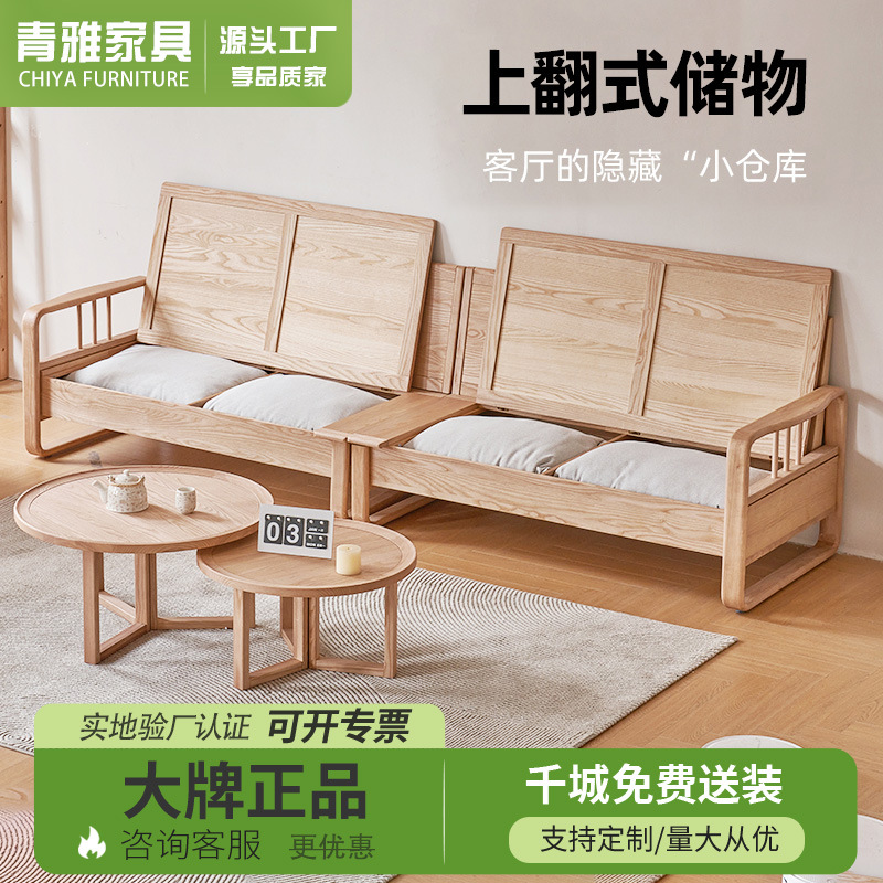 Sofa Kayu Solid Semua Kayu Putih Penyimpanan Sederhana Unit Kecil Musim Dingin dan Musim Panas Penggunaan Ganda Kayu Rumah Tangga Sofa Sudut Kaki