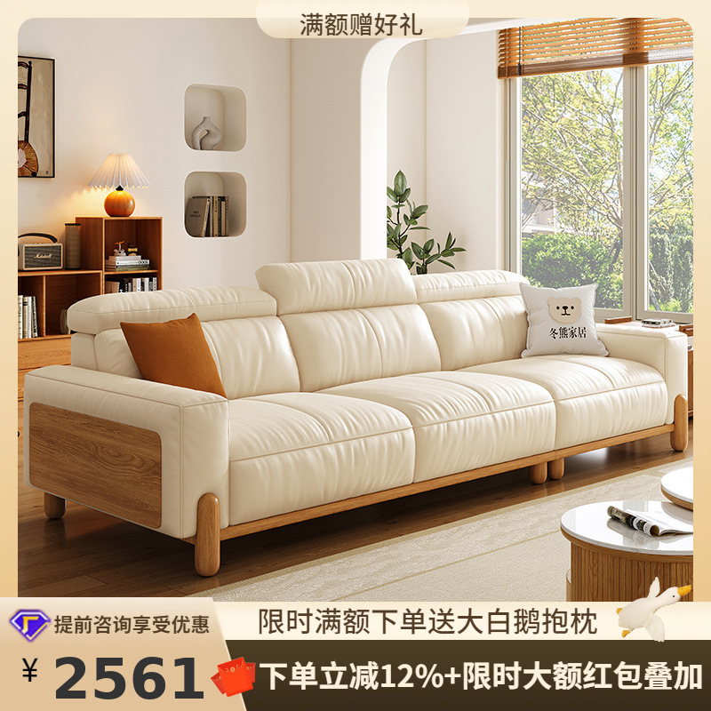 Tongyute Tofu Blok Kayu Asli Gaya Jepang Krim Kayu Asli Gaya Kayu Asli Tas Kecil Ruang Tamu Sofa Kulit Asli Bisa Disesuaikan