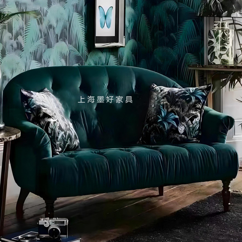 Sofa flanel gaya Perancis, sofa seni kamar Amerika, apartemen kecil, sofa banyak orang, sofa retro, gesper tarik nostalgia