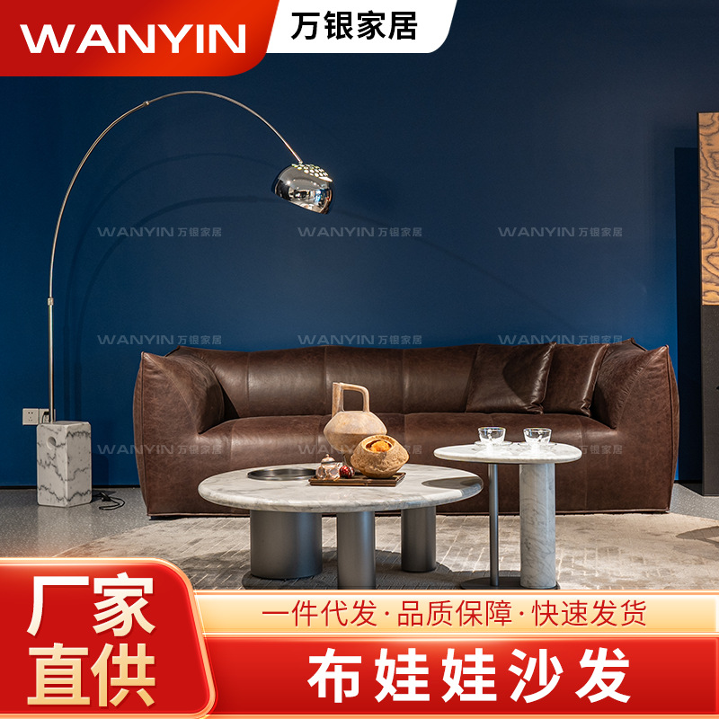 Sofa Kulit Asli Minimalis Gaya Italia Perabot Rumah Model Desainer Mewah Villa Nordic Kulit Sapi Lapisan atas Kombinasi Ruang Tamu