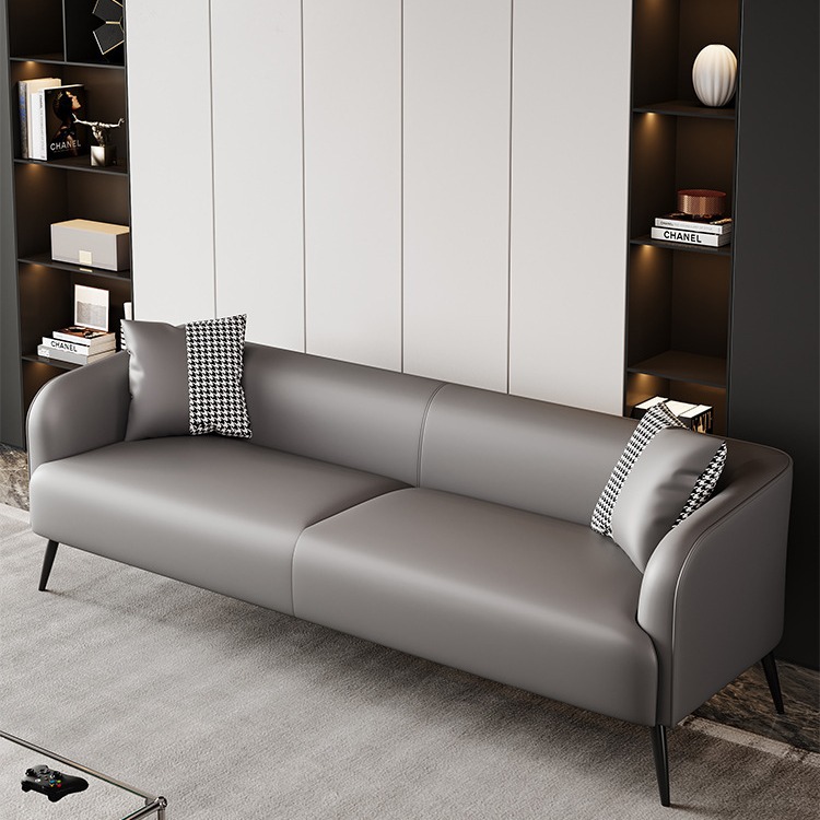 Sofa kulit Italia minimalis Internet selebriti Lawrence sofa kecil apartemen modern ruang tamu sofa kombinasi baris lurus lembut