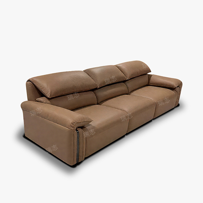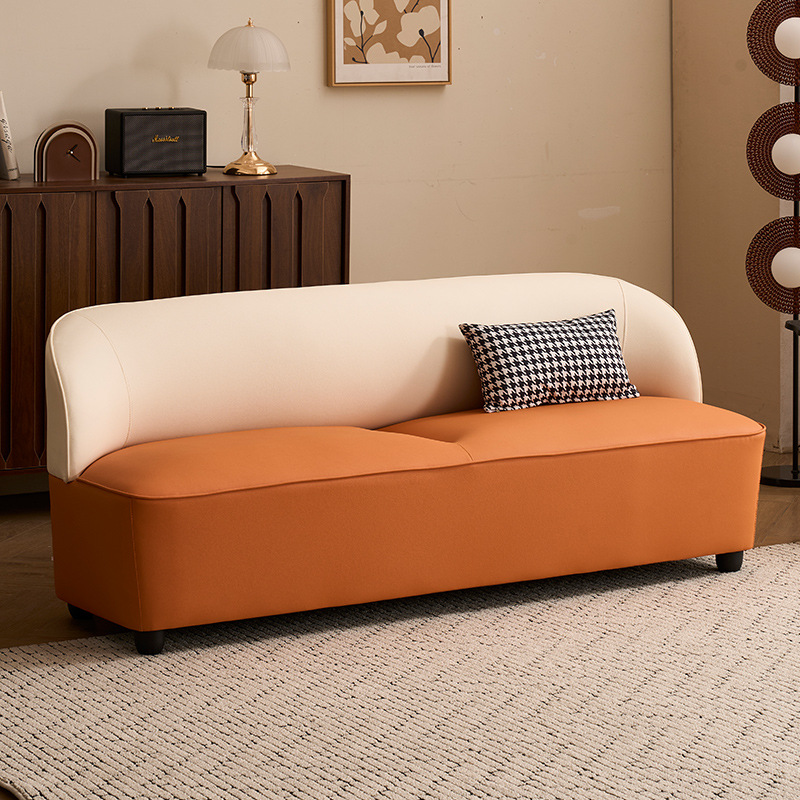 Sofa kulit minimalis, gaya krim apartemen kecil modern sederhana baris lurus banyak orang