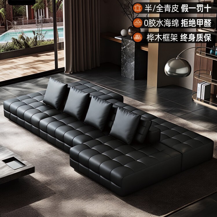 Lawrence sofa kulit minimalis Italia lapisan pertama kulit sapi ruang tamu sofa modul desainer Vila Apartemen besar dan kecil