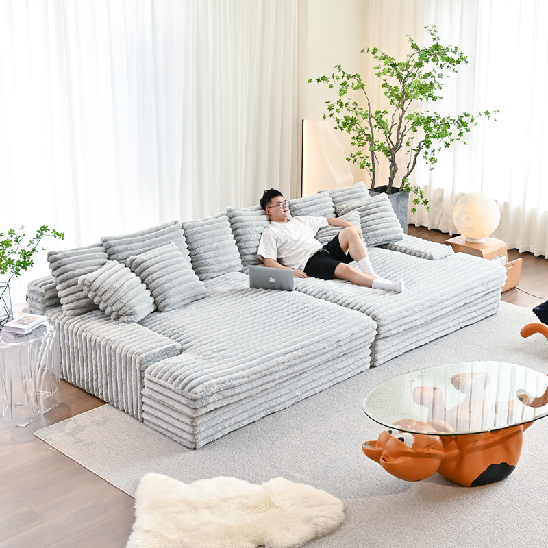 Gaya Italia Sederhana Modul Super Lembut Ruang Tamu Kain Kulit Kombinasi Dua Sisi Kombinasi Sofa Datar Besar Lembut Nyaman Produsen