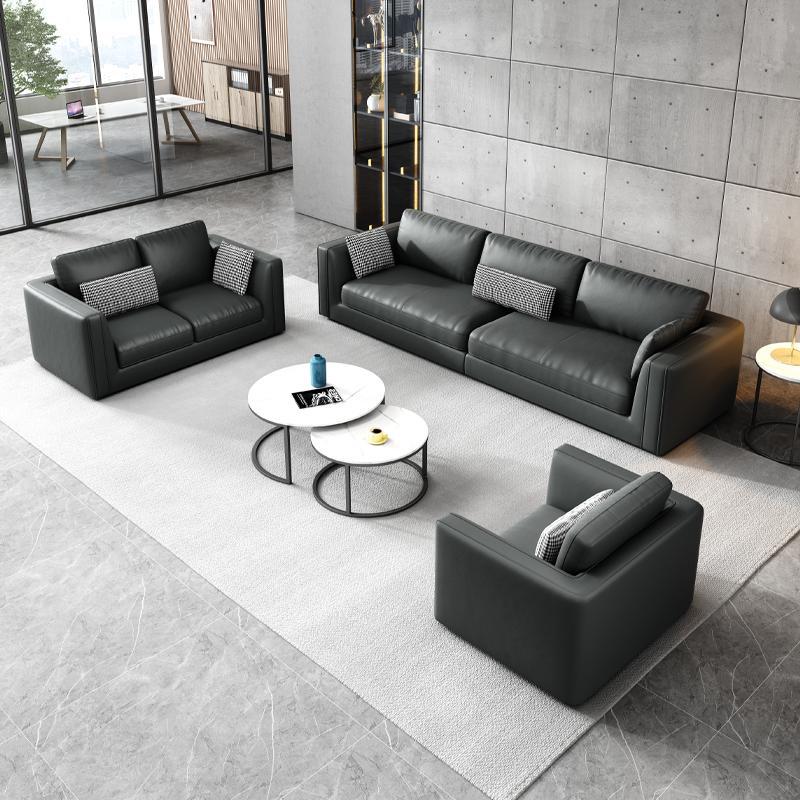 Setelan kombinasi meja teh mewah, setelan kantor kulit asli, ruang resepsi bisnis, modern, sederhana, ringan