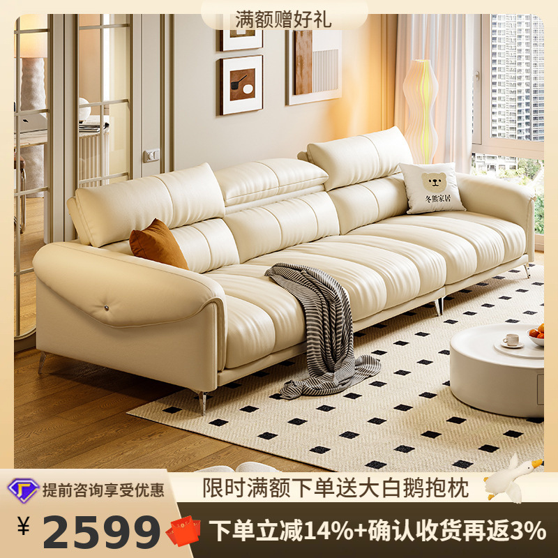Sofa lurus telinga gajah sederhana Nordic sofa ruang tamu tiga orang krim Italia sofa selebriti Internet desainer