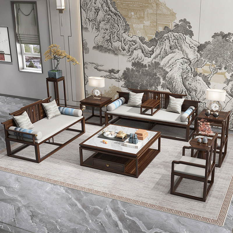 Sofa kombinasi kayu padat gaya Tiongkok, baru, resepsi modern, tempat tidur Luhan sofa Villa Wujin furnitur kayu