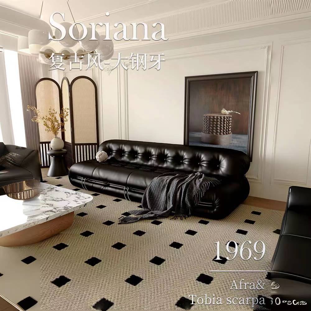 Sofa kunci piano baris lurus minimalis Italia, sofa kombinasi kulit mewah lampu sudut tinggi apartemen besar aula horizontal ruang tamu