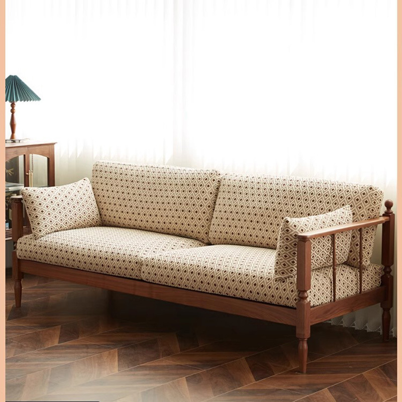 Sofa kayu kenari hitam Amerika Utara, tiga kursi kayu polos, apartemen besar dan kecil, ruang tamu, sofa Jepang semua bahan kayu solid