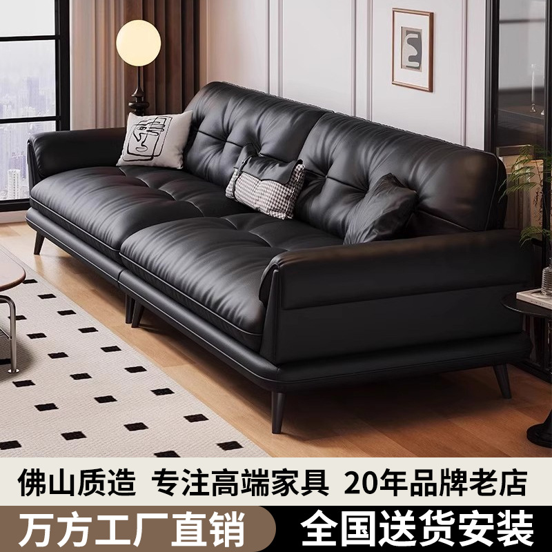 Sofa Kulit Asli Minimalis Gaya Italia Set Sofa Foshan Lapisan Pertama Kulit Sapi Sederhana Selebriti Internet Desainer Unit Kecil Ruang Tamu