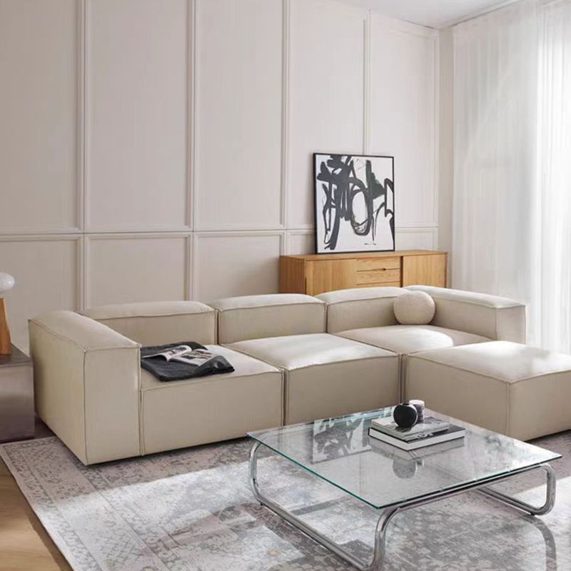 Sofa blok tahu minimalis Italia, modul sudut minimalis modern B & B apartemen kecil persegi lurus katun dan linen blok tahu