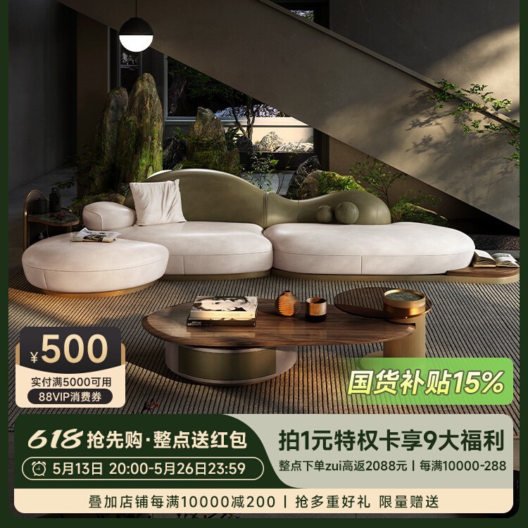 Ins kombinasi sofa kulit asli, Kasut desainer Italia sudut bentuk Spesial