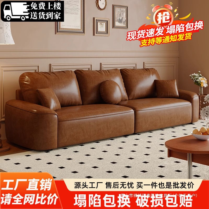 Sofa Kulit Parafin Kucing Gaya Reproduksi Sofa Potongan Tahu lurus Premium Minimalis Mewah Rumah Tangga Tipe Kecil Ruang Tamu