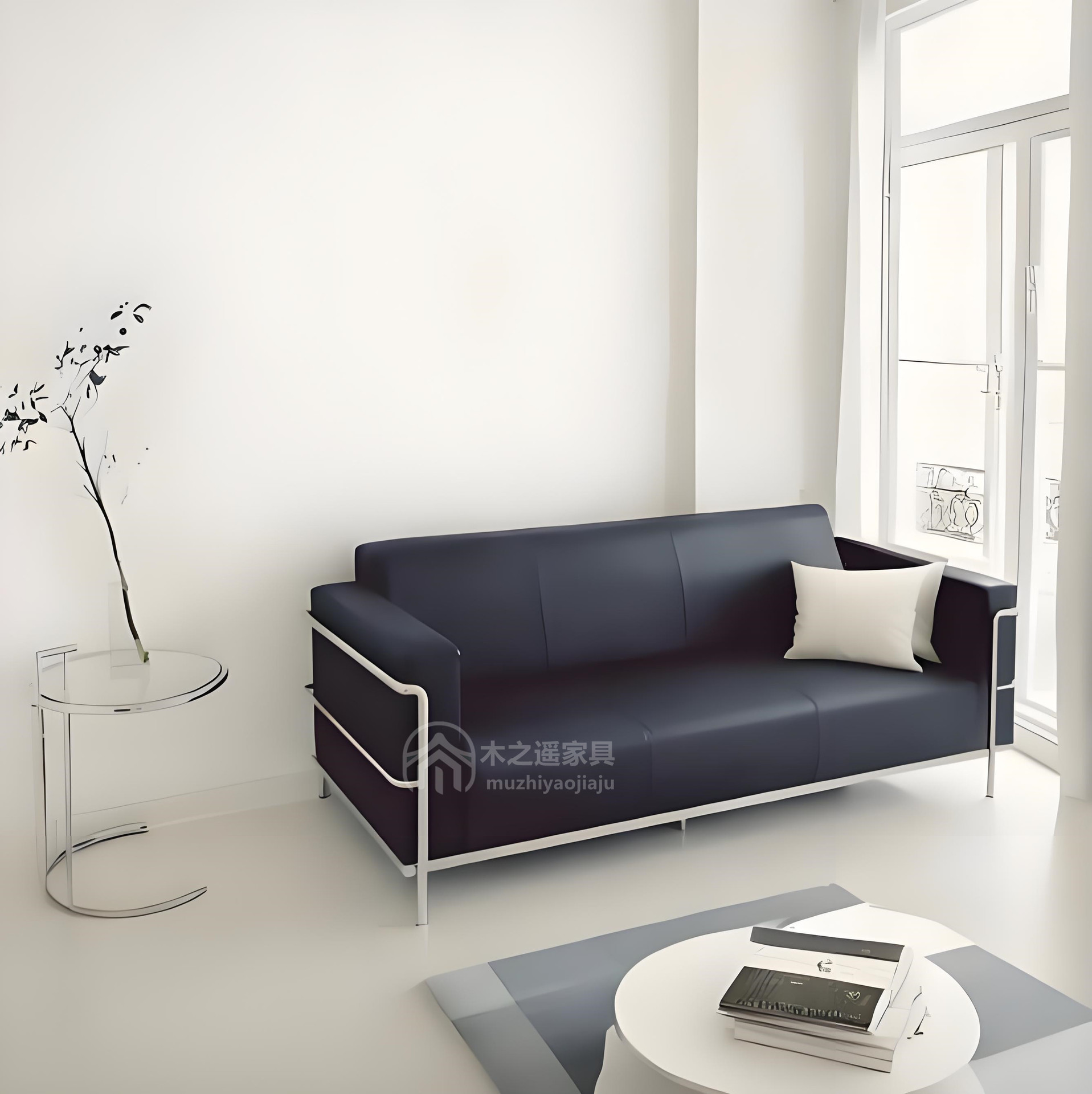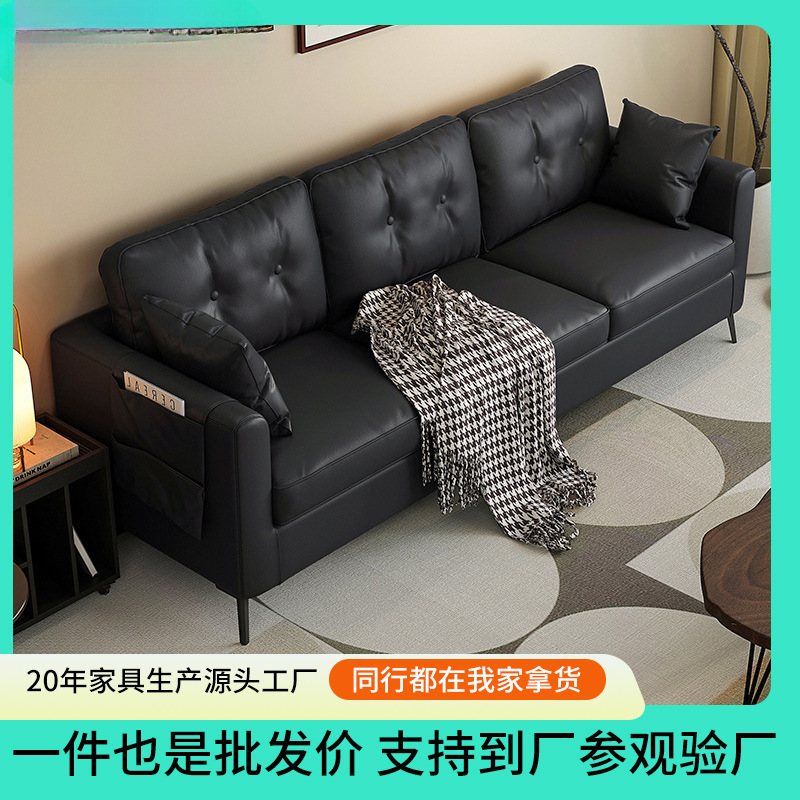 Sofa Ruang Tamu Apartemen Toko Pakaian Sederhana Apartemen Apartemen Murah Warna Hitam Seni Kulit Sofa Tiga Orang