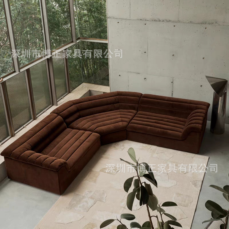 Sofa Retro Gaya Prancis Sofa Desainer Beludru Kombinasi Modul Model Pertengahan Sofa Gaya Pertengahan Ruang Tamu Ukuran Besar Sofa