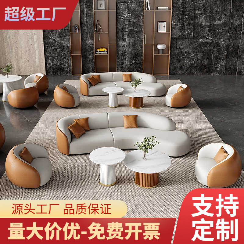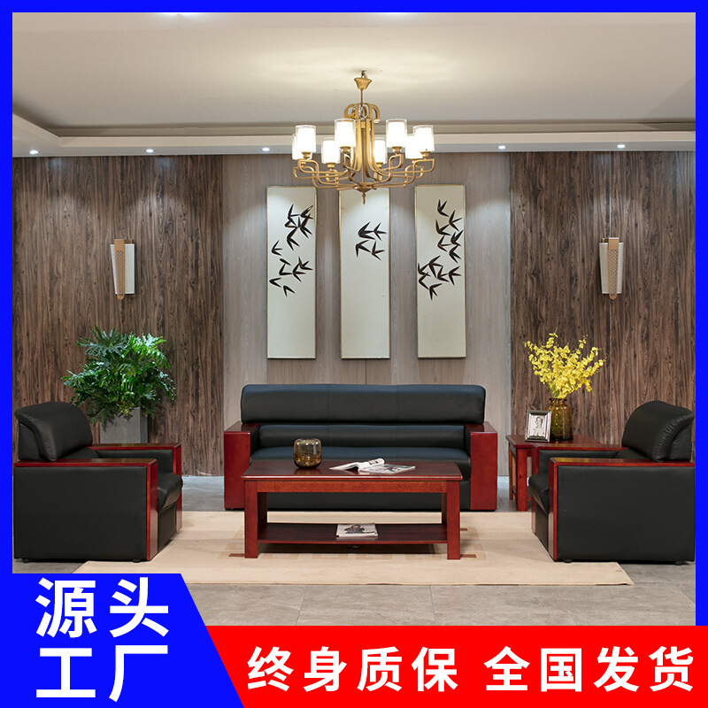 Sofa Kulit Kantor Modern Sederhana Kombinasi Meja Kopi Kamar Negosiasi Bisnis Ruang Penerimaan Perusahaan Tiga Orang