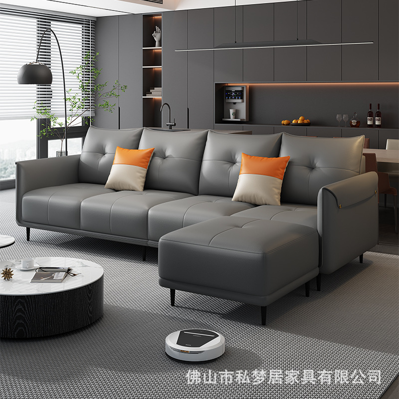 Sofa Kulit Asli Gaya Eropa Model Baru Tipe Kecil Lurus Lurus Toko Tahan Lama Foshan Lantai Pertama Kantor Tempat Cakar Kucing Ruang Tamu