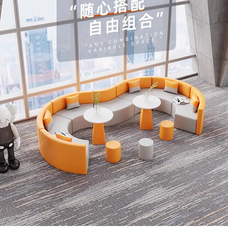 Ruang istirahat kantor, sofa santai sederhana berbentuk busur, meja teh bulat kombinasi