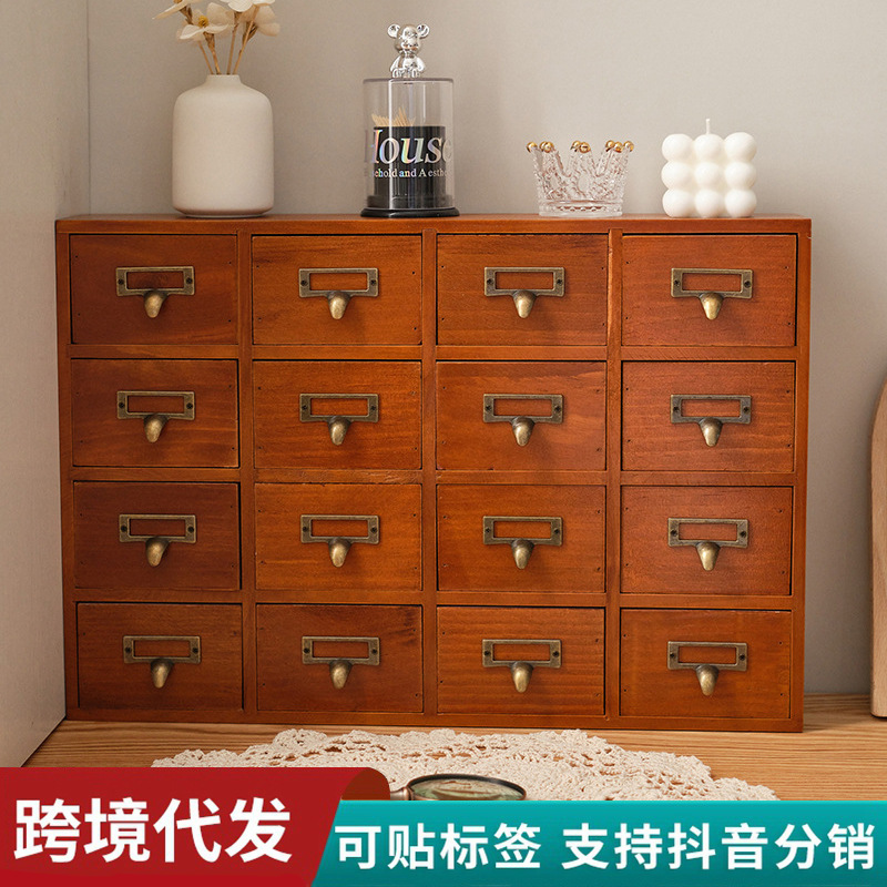 Baru gaya Tiongkok kayu padat 16 Laci kabinet penyimpanan desktop antik pita multi lapisan kotak penyimpanan akun tangan kabinet obat kecil Tiongkok