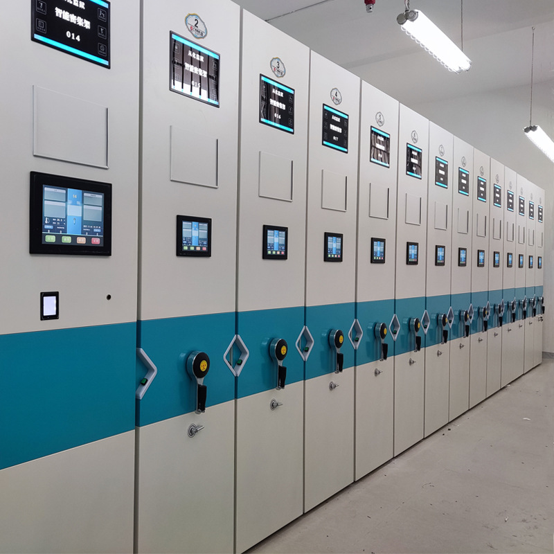 Rel kabinet penyimpanan file seluler, rak penyimpanan cerdas ruang file baja dioperasikan dengan tangan