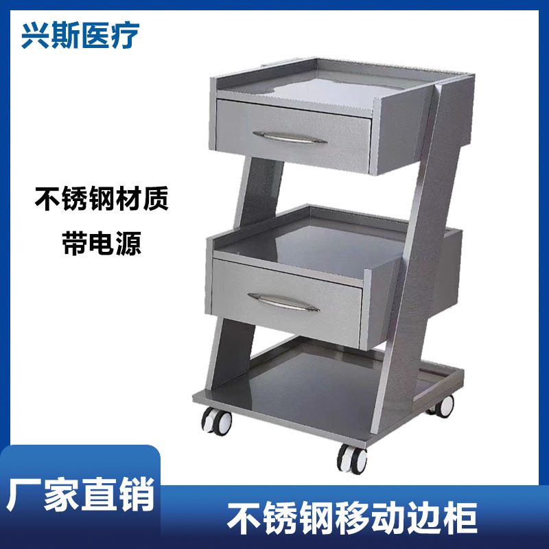 Kabinet samping besi tahan karat medis gigi kabinet mesin tanam klinik gigi kabinet mobil dua laci baja tahan karat