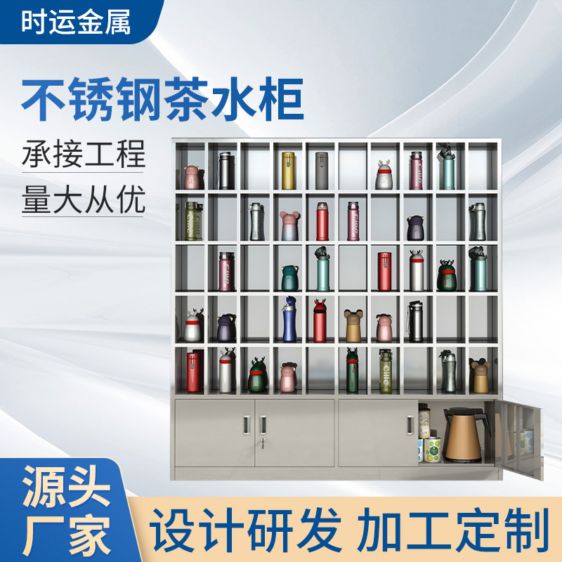 Kabinet cangkir air baja tahan karat pemegang cangkir air santai 304 kabinet penyimpanan cangkir air multi-grid sekolah lemari cangkir teh bengkel pabrik