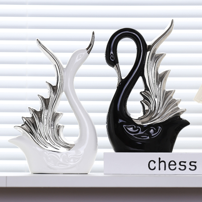 Dekorasi Swan Mewah Ringan Dekorasi Ruang Tamu Pasangan Lemari TV Keramik Hadiah Kreatif Kantor Pasangan