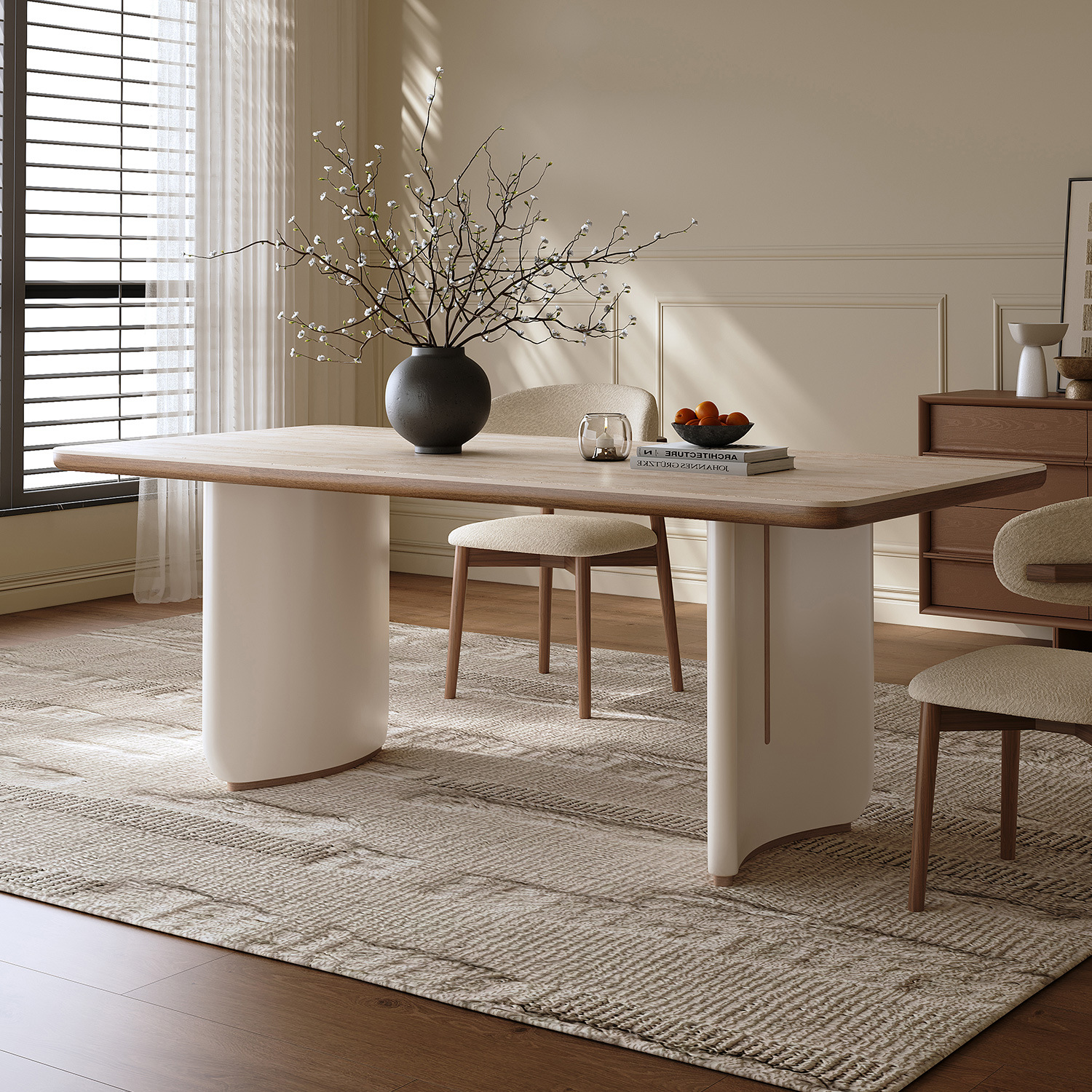 法式奶油风洞石岩板餐桌长方形设计师办公桌客厅书桌洽谈桌