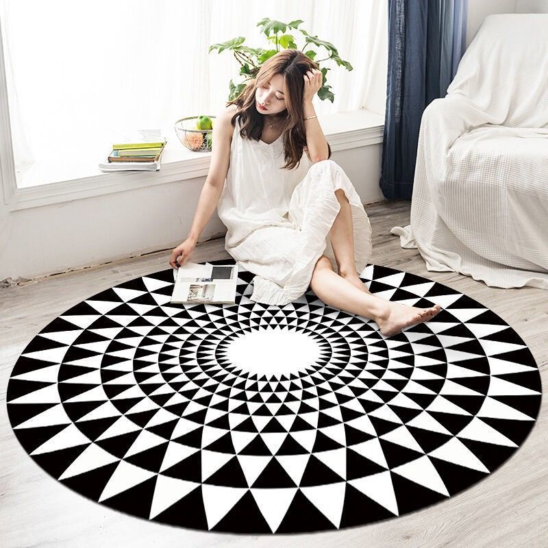 Karpet bulat anti selip anak-anak, cahaya mewah sederhana kamar tidur ruang tamu samping tempat tidur kursi putar komputer meja kopi keranjang gantung alas lantai